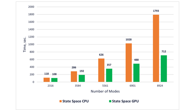 GPU podpora za modalne dinamične solverje je bila občutno razširjena in optimizirana. Zmogljivost več-GPU Conventional solverja za modalno osnovano stacionarno dinamiko je bila znatno izboljšana. Poleg tega novo implementirani GPU-podprti Spectral solver razširja GPU podporo na dodatne primere modalne stacionarne dinamične analize.