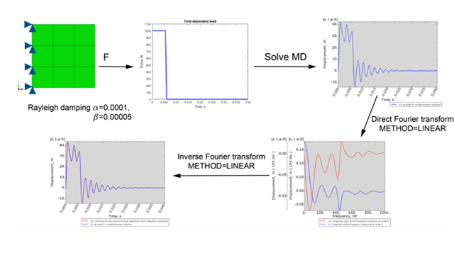 V linearnih dinamičnih postopkih je zdaj na voljo uporaba Fourierjeve transformacije za pretvorbo mehanskega odziva iz časovne domene v frekvenčno domeno in obratno. Nova funkcionalnost je posebej uporabna v delovnih tokovih, povezanih z vzdržljivostjo in NVH analizami, kjer je analiza frekvenčnega odziva ključnega pomena.